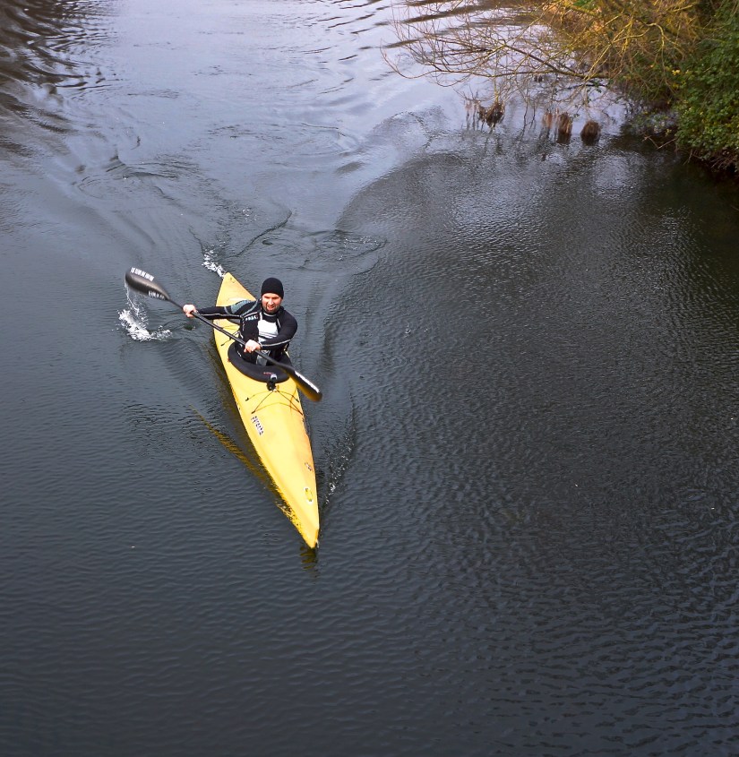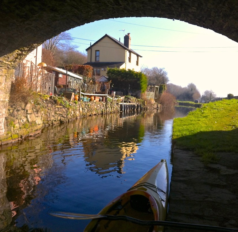 Following a straightforward 2 mile ‘not frozen’ canal paddle I reached the aqueduct and carried the loaded Speeder down to the river’s edge where the real adventure began, a 9 mile whitewater river paddle.