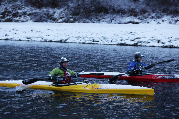 So with this in mind, I dress in layers that will keep the parts of me working hardest at a comfortable temperature and breathing. This can mean just a single or pair of thermal base layers on my upper body, even in frosty conditions, or a thermal base layer and breathable windproof when windchill is a factor. I am a big fan of the zoned warmth provided by gilets and often use these as a second layer in moderate conditions. I find for most paddling my legs require less mobility so tolerate a single thicker layer, such as neoprene based tights, and rarely need any additional wind proofing as a result. I avoid anything that can’t breathe because I’ve experienced the dangers of being soaked with sweat then having to stop, which quickly becomes equivalent to the results of full immersion (see below). So, if possible I would rather accept some dampness caused by paddle splash than don full waterproofs, relying on radiating body heat to keep damp base layers warm. However, clearly there are occasions where a full waterproof outer is the only answer and in these instances I find maximising venting (so ideally no latex cuffs and collars) and, if necessary, moderating exertion, help keep things in balance.