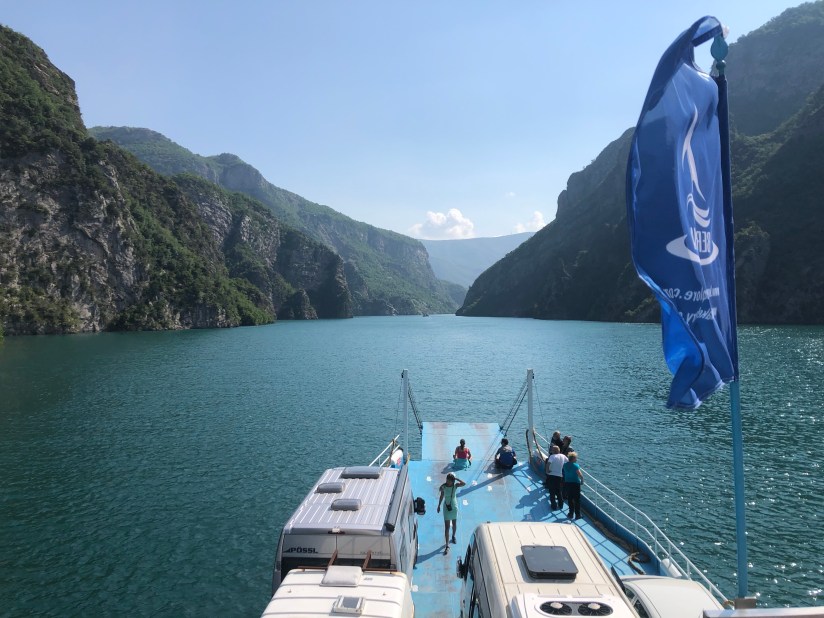 Anybody who has seen images of Lake Koman would surely want to go there and since we were passing through Albania on our ‘Balk-Van’ Tour we had the perfect opportunity. It was a long, difficult drive along a road which became increasingly rugged the further we travelled but eventually The Dub made it to Koman which sits at the foot of the VauDejes dam.