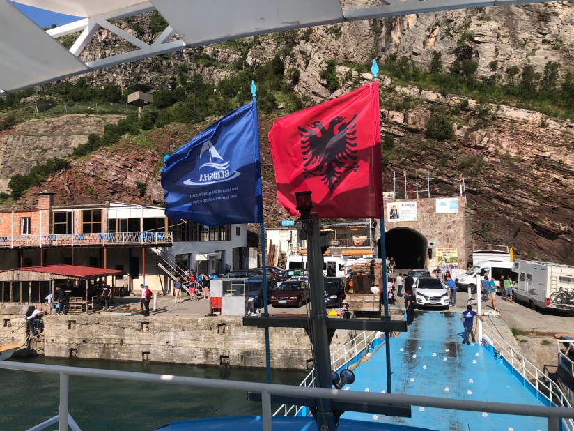 And it was that conversation with Alphonse, in somewhat broken English, that led us to be sat on a ferry heading to Fierza with our SUPs wedged in the vehicle loading bay. We’d paid for a standard ticket but had anything but standard plans as the ferry began its winding journey down the lake. It was my understanding from the conversation that there was a stop off point in the middle of the lake from where we could disembark with our SUPs and head off for a paddle up the remote Lumi i Shales valley, away from the main ferry boat route. Apparently it had been done by kayak before but SUPs were something new to the ferry team.